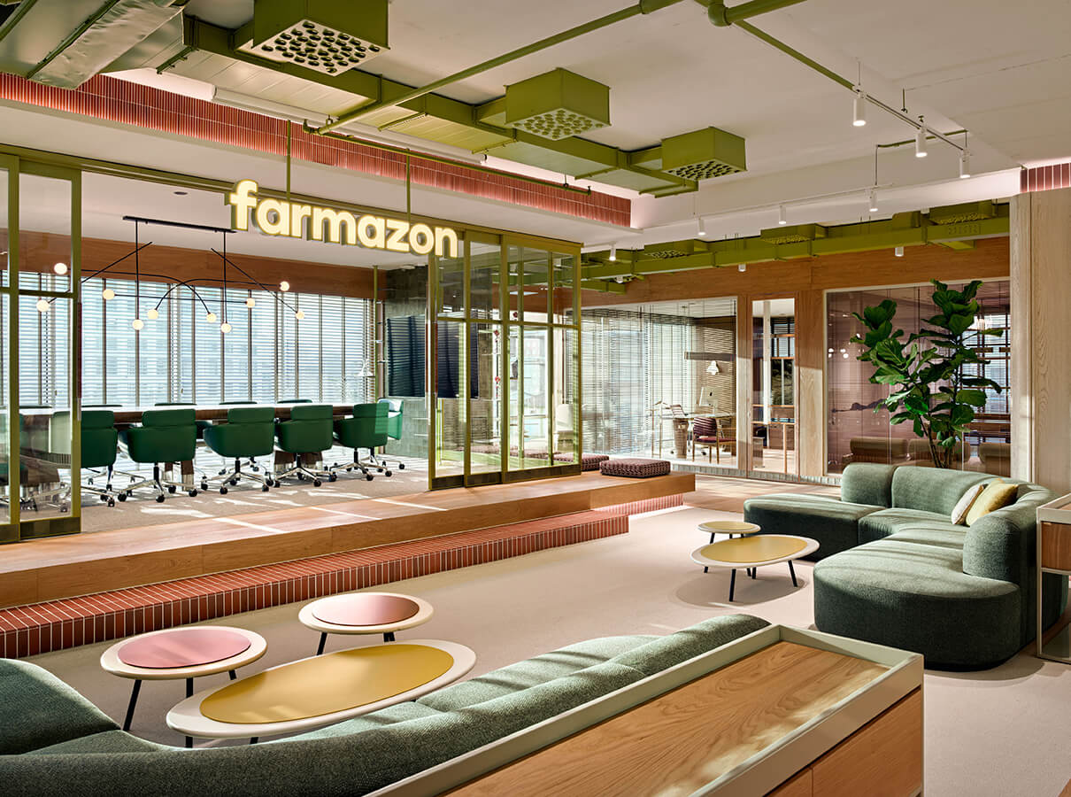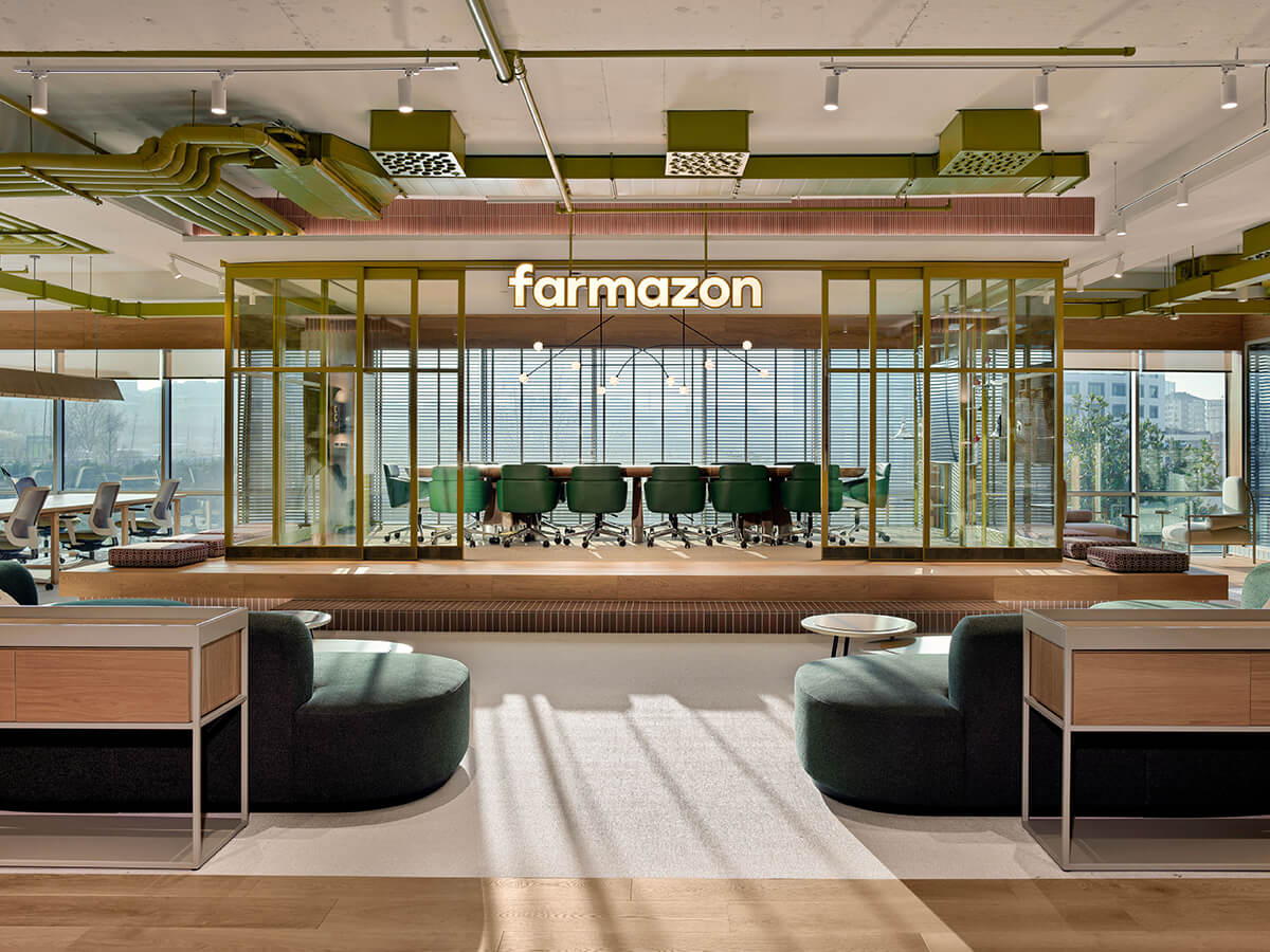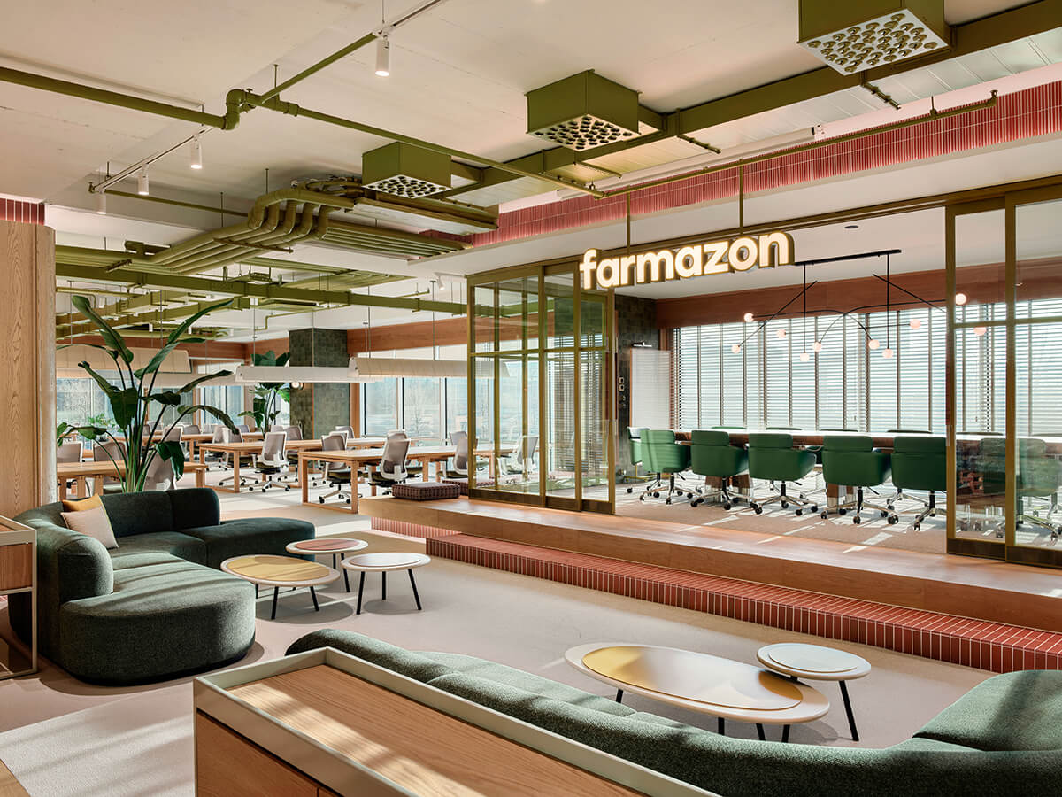 Farmazon’un yeni genel merkezi, klasik bir ofis tadilatı projesinin çok ötesine geçerek; markanın enerjisini, çağdaş iş kültürünü ve estetik beklentilerini bir araya getiren bir yapıya dönüştü.