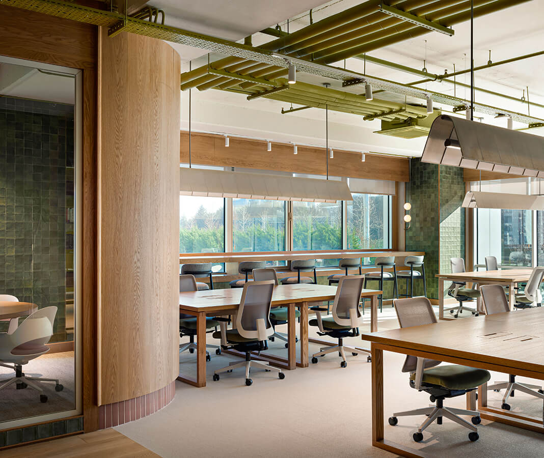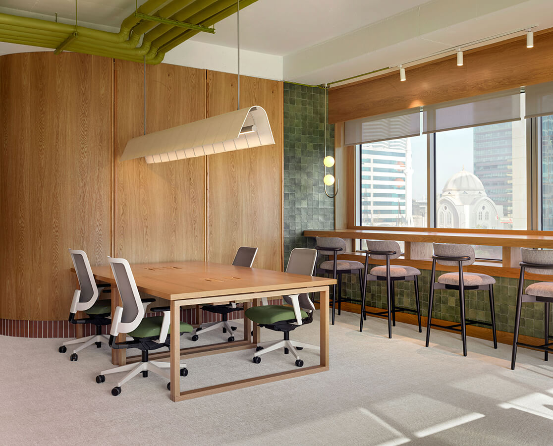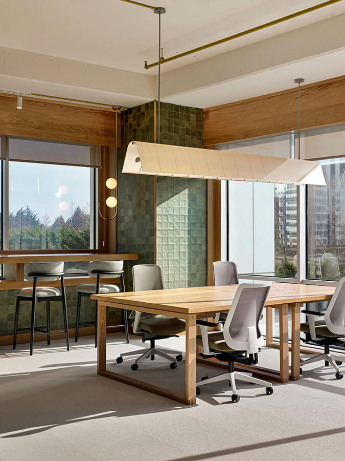 Tüm alanlarda ergonomi önceliklendirildi. Yumuşak oturumlu mobilyalar, ayarlanabilir aydınlatmalar ve ses yalıtımı sağlayan paneller ile bireysel konfor desteklendi. Bu çözümler, hem bireysel konsantrasyonu hem de takım çalışmalarını teşvik eden, yenilikçi bir anahtar teslim ofis yenileme anlayışıyla hayata geçirildi.